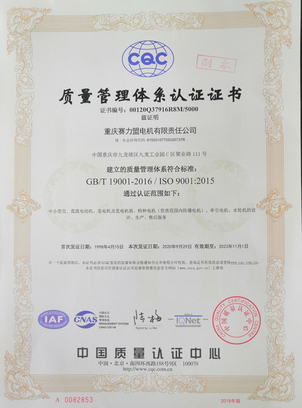 公司屬重慶市100戶重點增長企業之一,連續八年入圍中國機械500強,多次榮獲中國電氣100強,重慶工業企業50強,重慶民營企業50強,重慶市文明單位等稱號。賽力盟電機榮獲重慶市名牌產品、著名商標,并被評為重慶市高新技術企業。